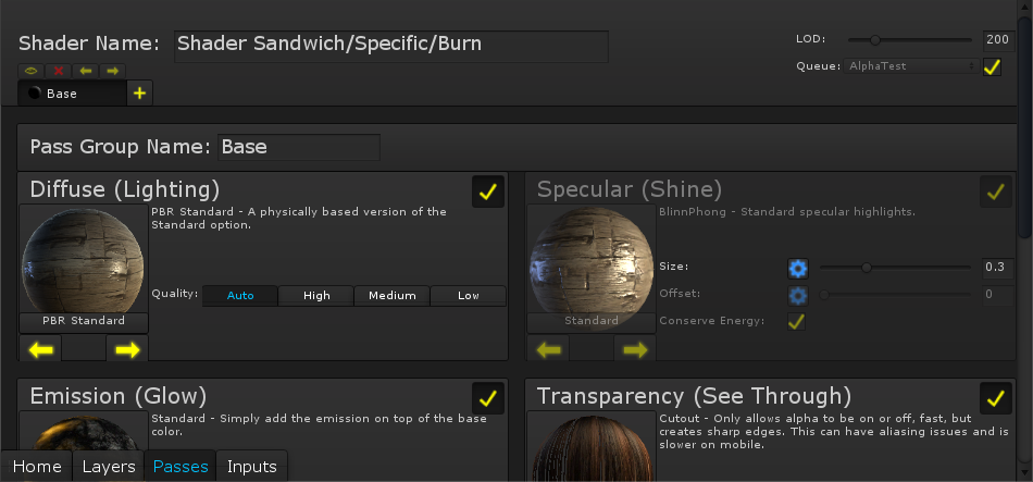 The Transparency settings allow you to set if see-through parts are allowed, and how they work.