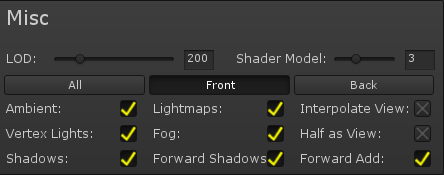 ShadowsEnables shadow recieving support, when disabled the shader is faster and smaller.